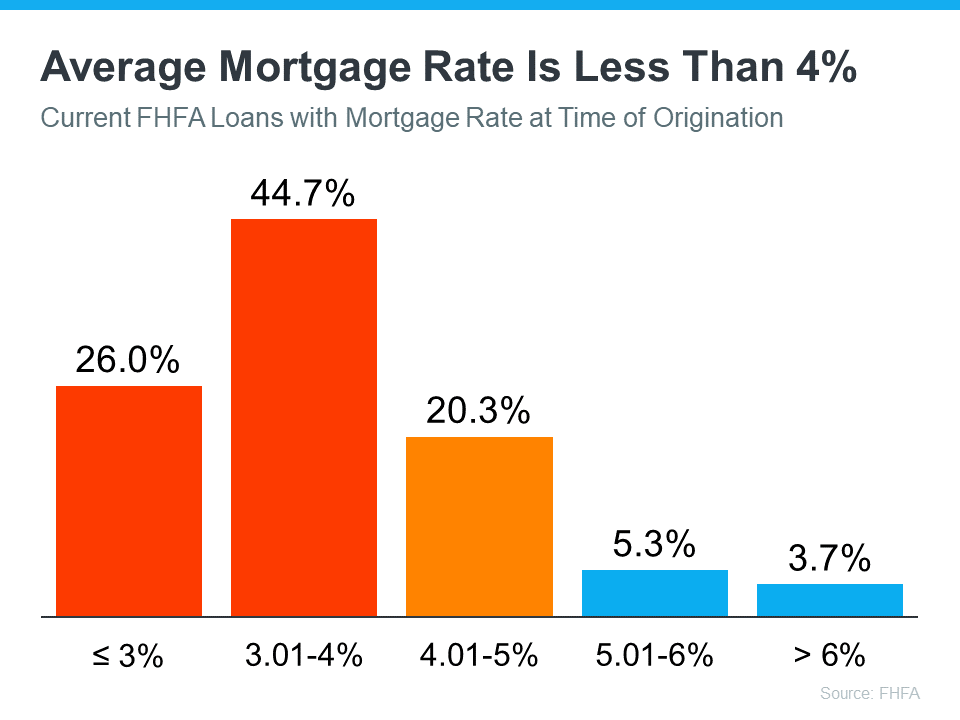 According to the Federal Housing Finance Agency (FHFA), the average interest rate for current homeowners with mortgages is less than 4% (see graph below):